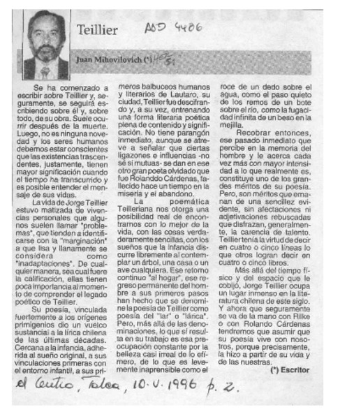 El poeta Jorge Teillier [artículo] José Vargas Badilla.
