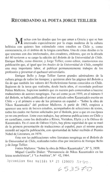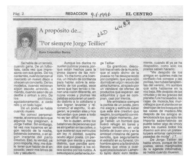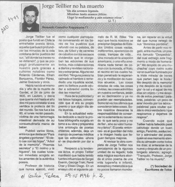 Un recuerdo de Jorge Teillier [artículo]Andrés Gallardo.