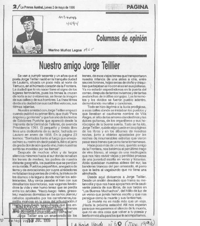 El poeta Jorge Teillier [artículo] Marino Muñoz Lagos