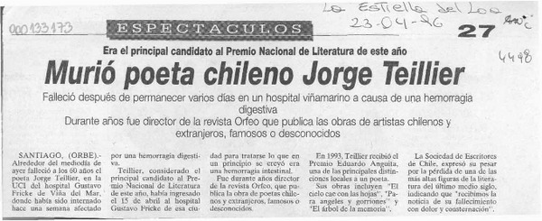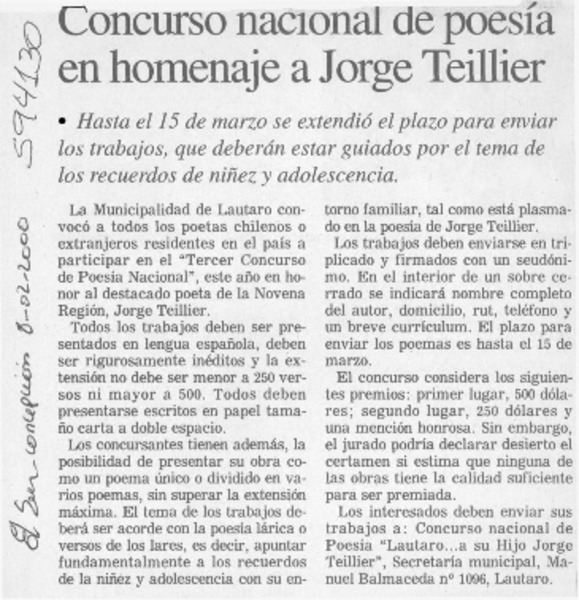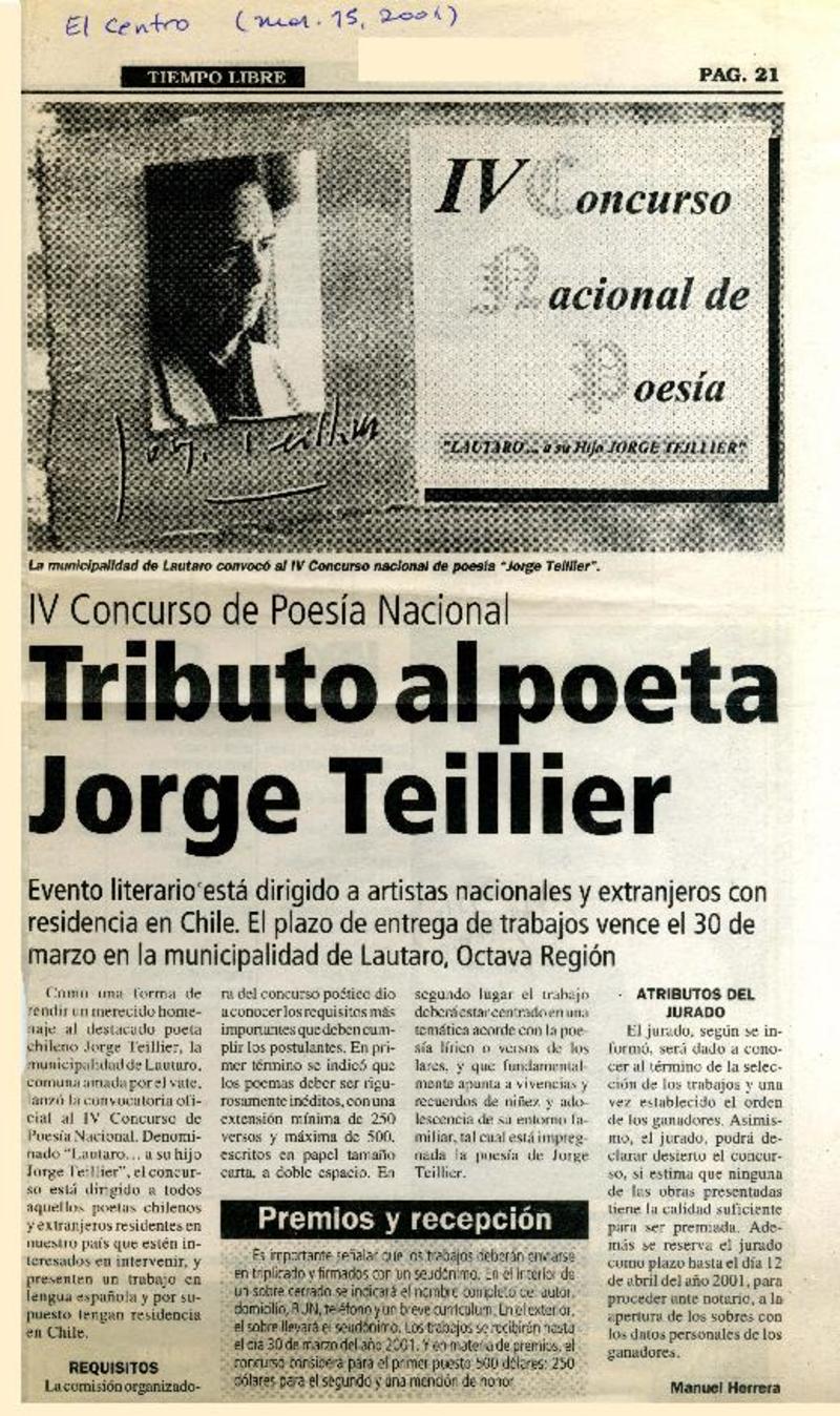 Concurso nacional de poesía en homenaje a Jorge Teillier [artículo]