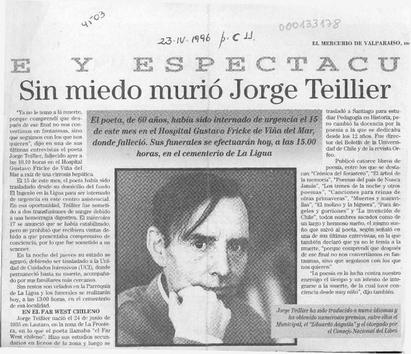 Una muerte en la poesía [artículo] Fernando Quilodrán.