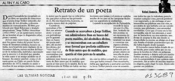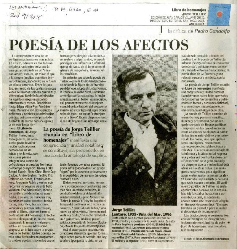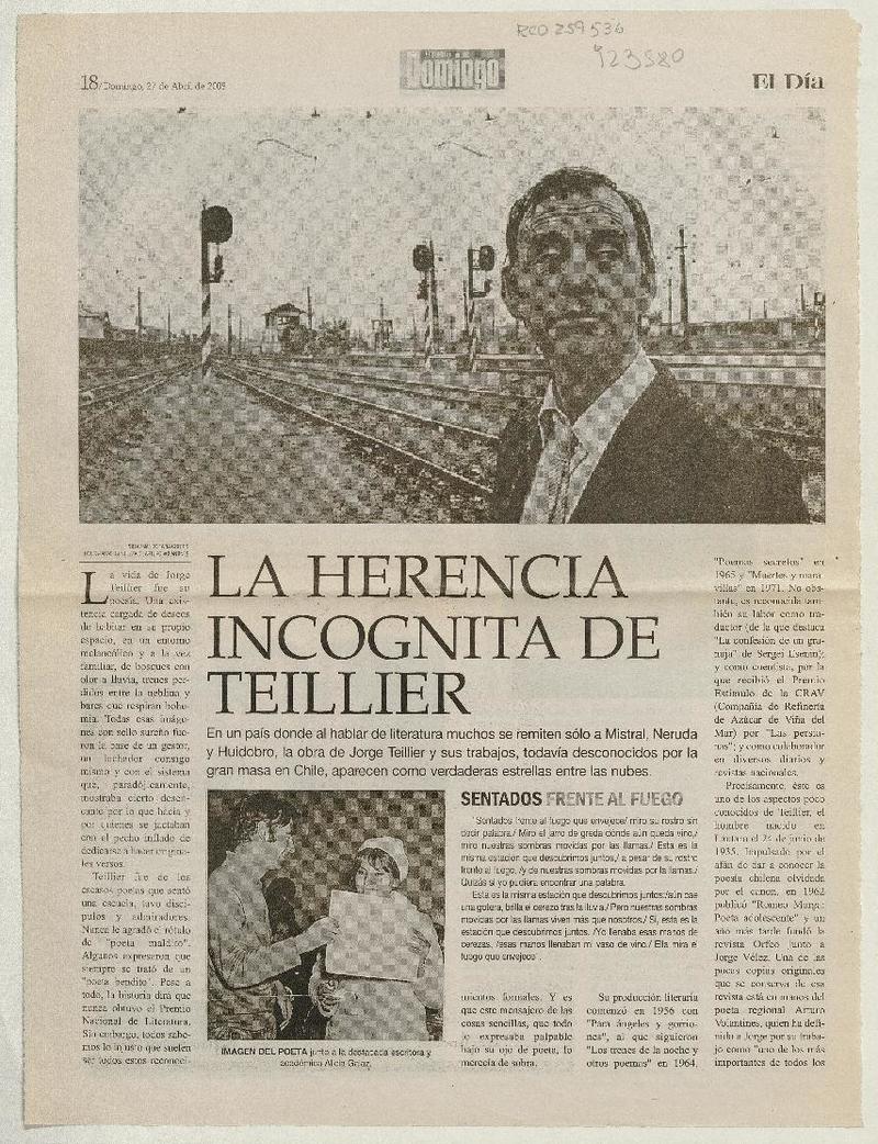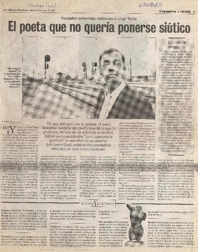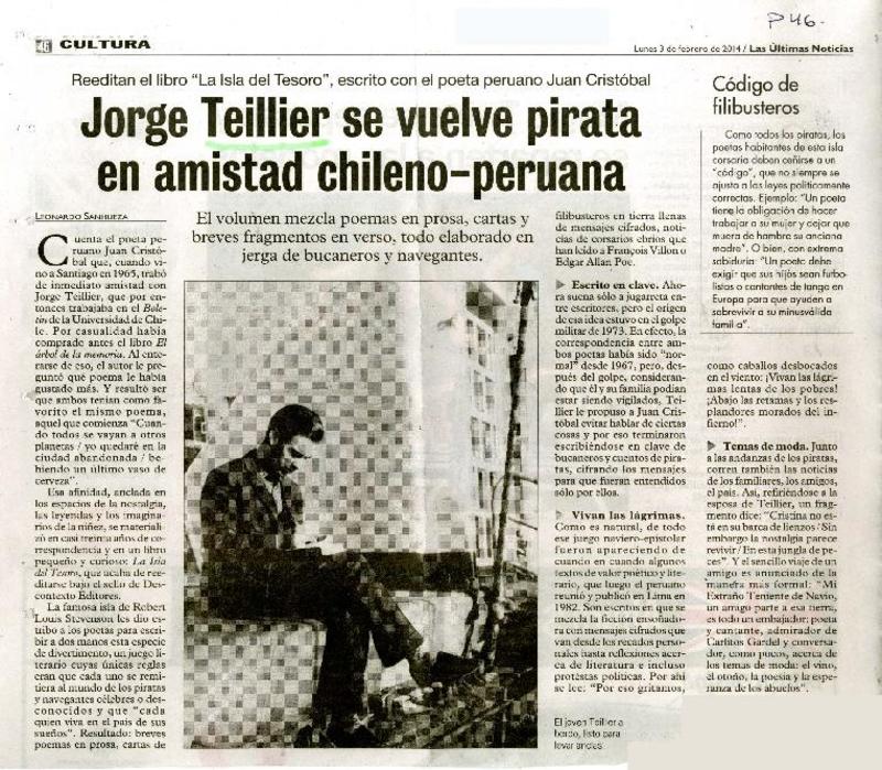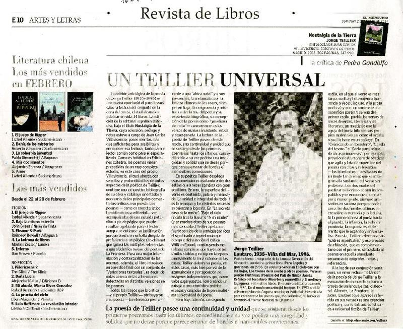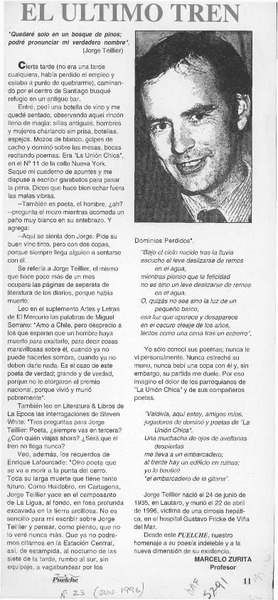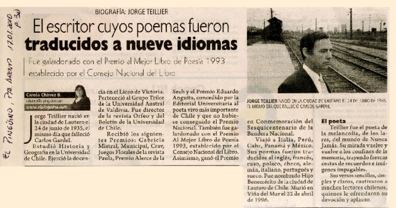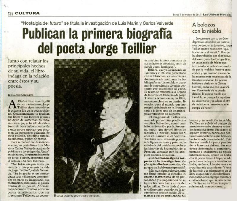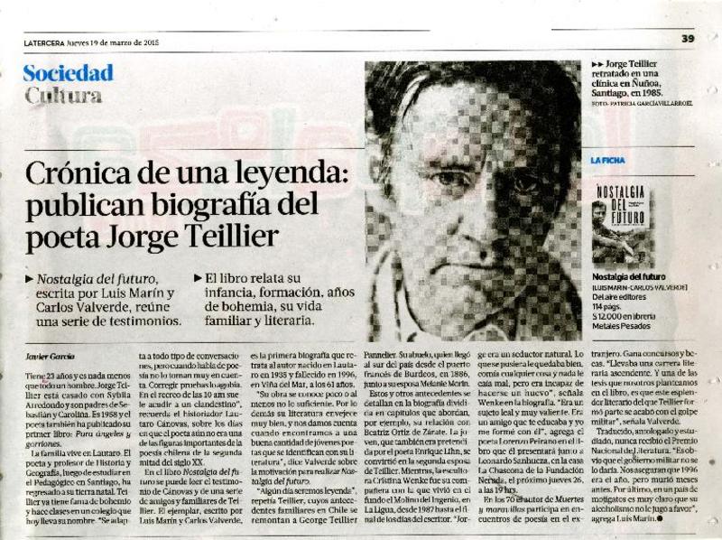 Crónica de una leyenda: publican biografía del poeta Jorge Teillier [artículo] Javier García.
