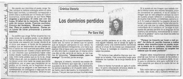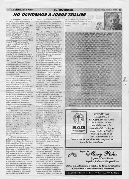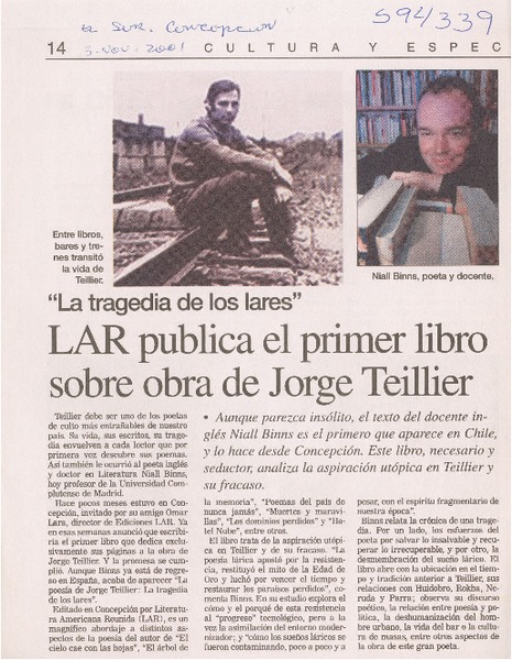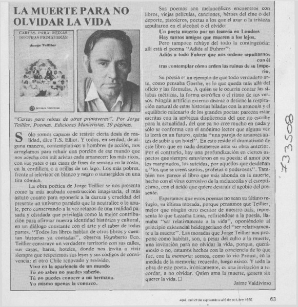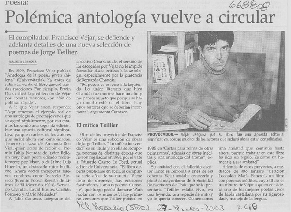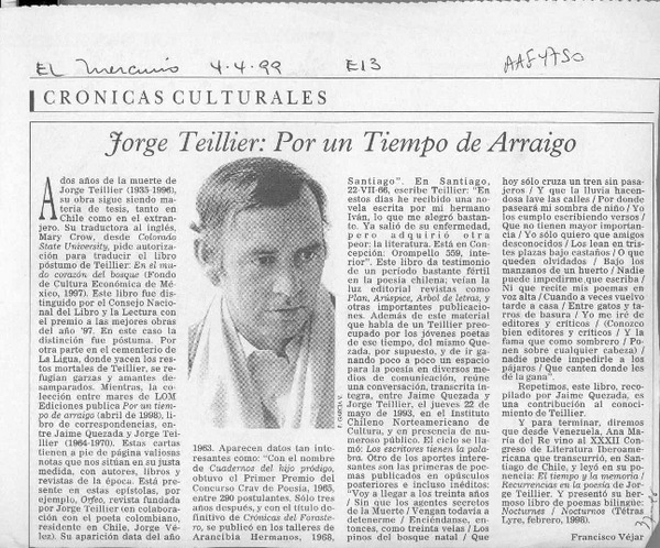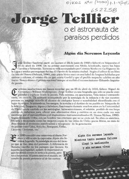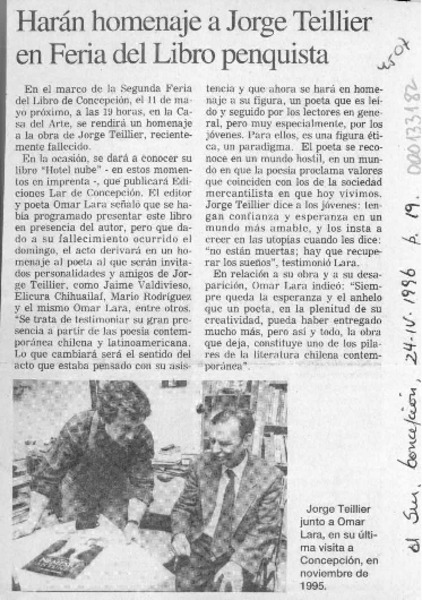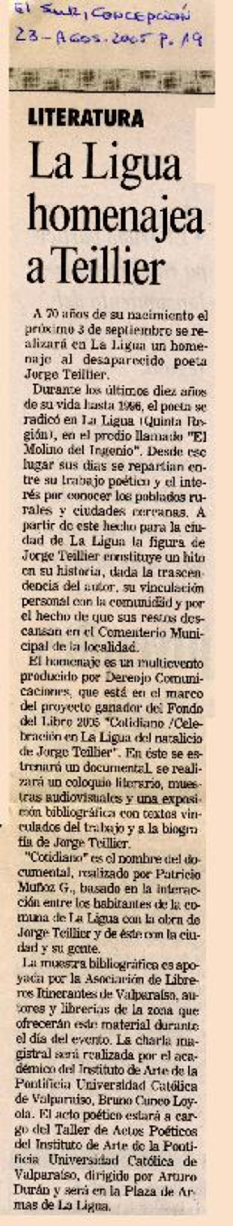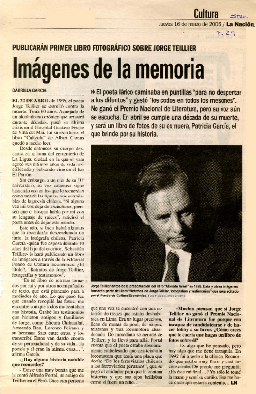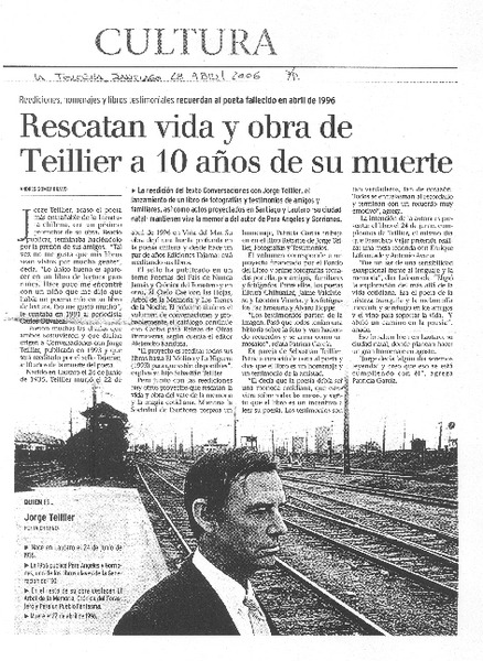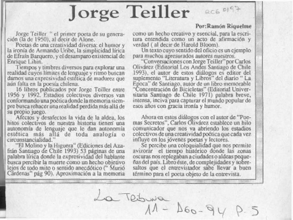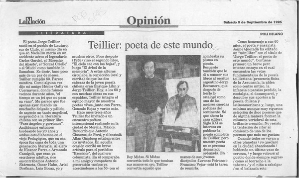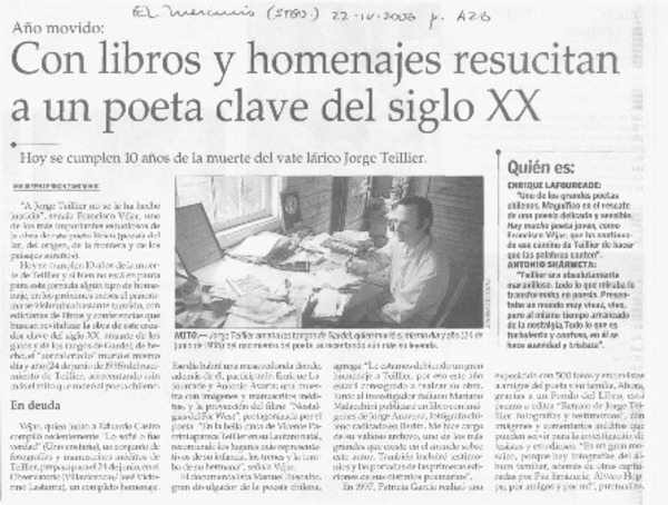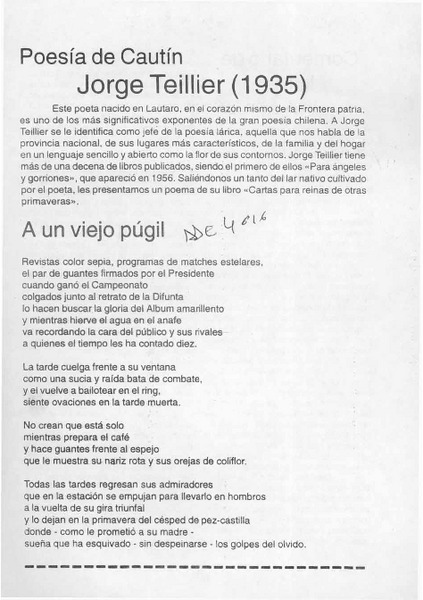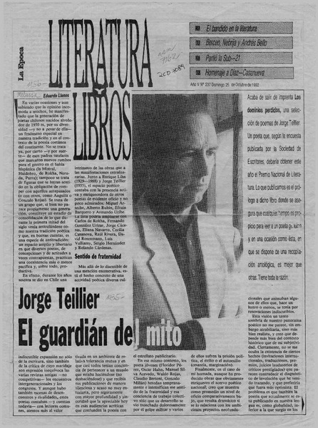 Crónica de una leyenda: publican biografía del poeta Jorge Teillier [artículo] Javier García.