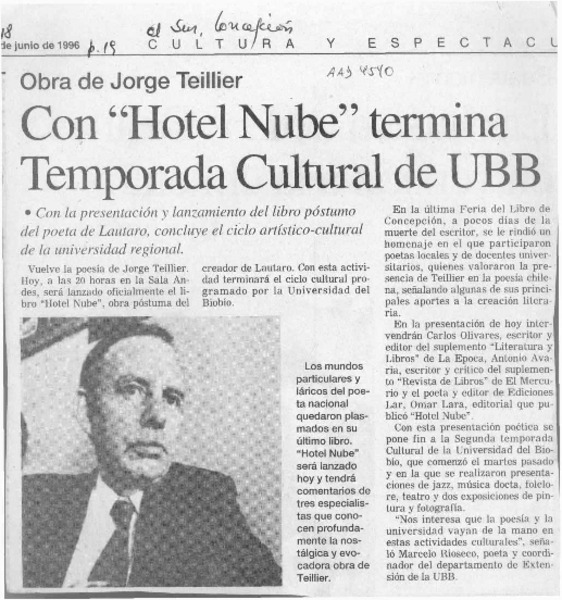 Con "Hotel Nube" termina Temporada Cultural de UUB. [artículo].
