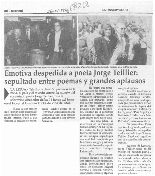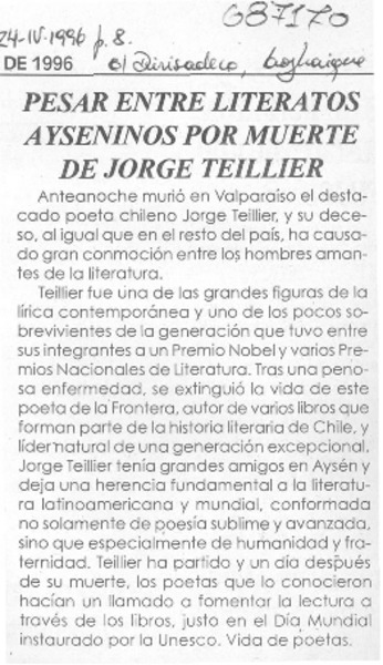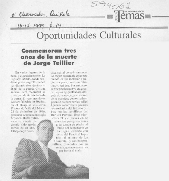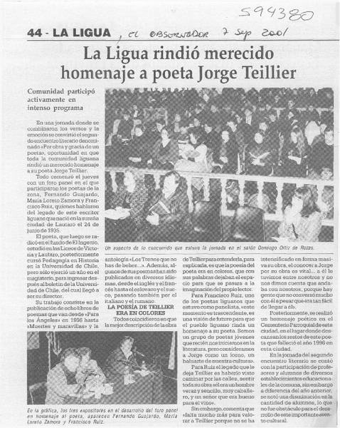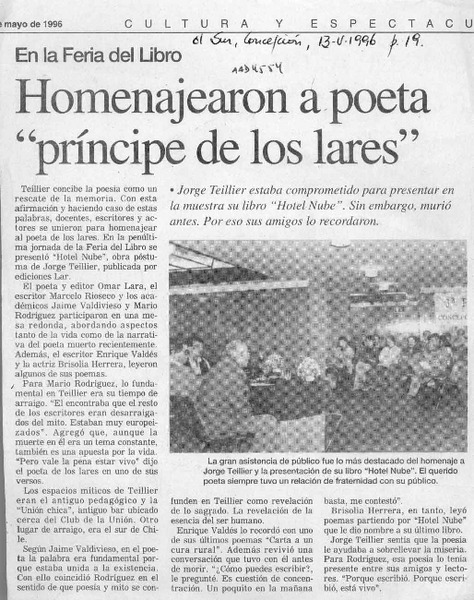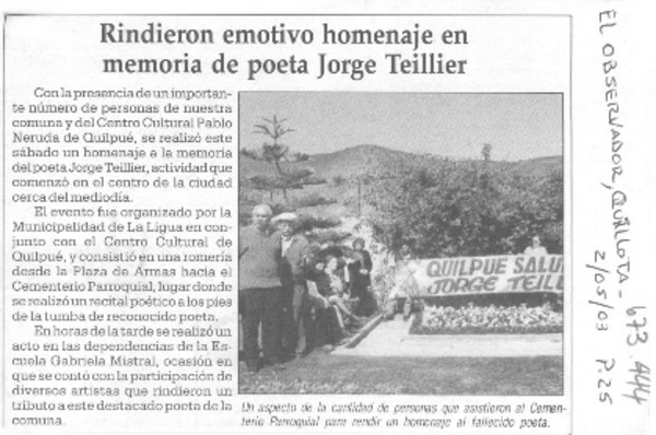 Rindieron emotivo homenaje en memoria de poeta Jorge Teillier. [artículo]