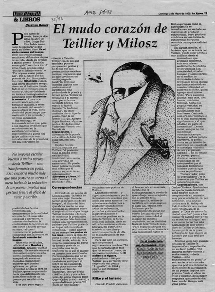 El mudo corazón de Teillier y Milosz [artículo] Cristián Gómez.