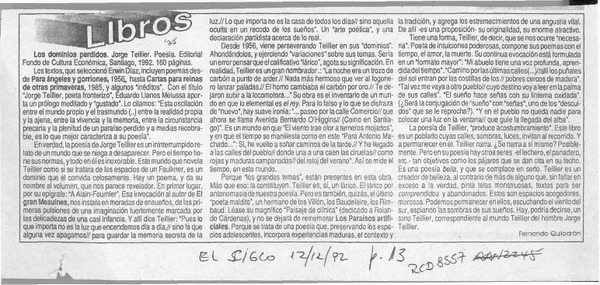 El libro póstumo de Teillier [artículo] Eduardo Henríquez O.