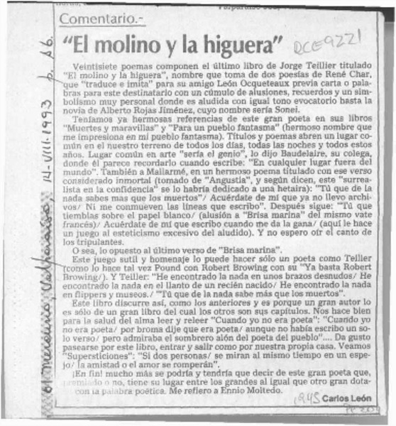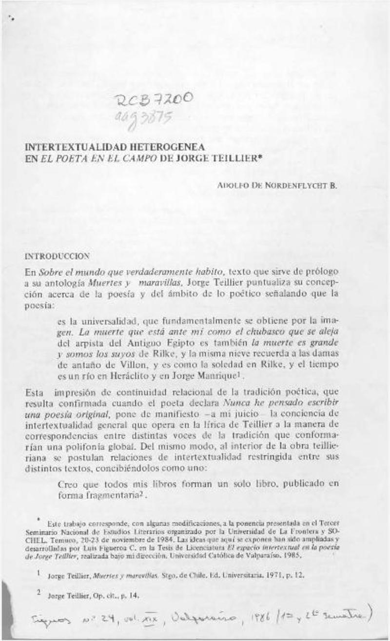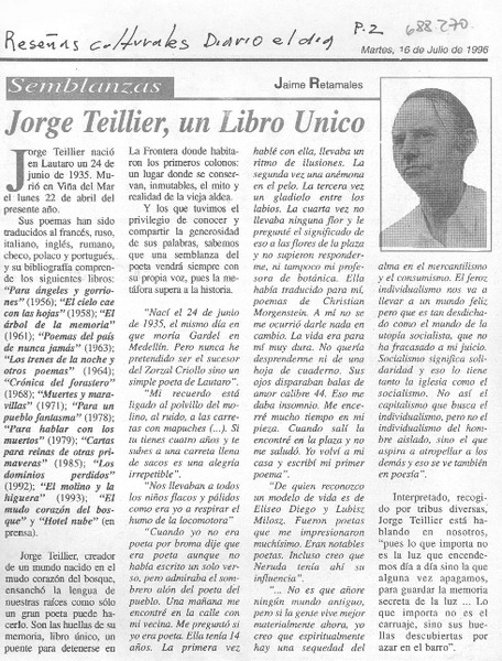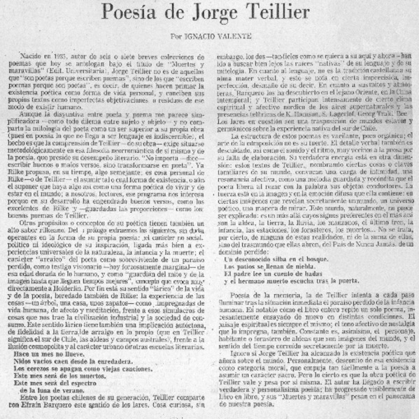 Semblanza del poeta Jorge Teillier [artículo] Carlos Nora.
