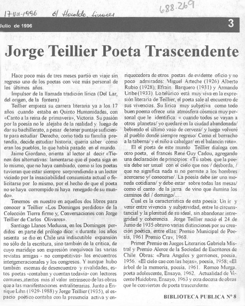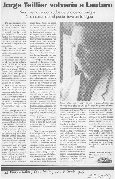 Tributo al poeta Jorge Teillier [artículo] Manuel Herrera.