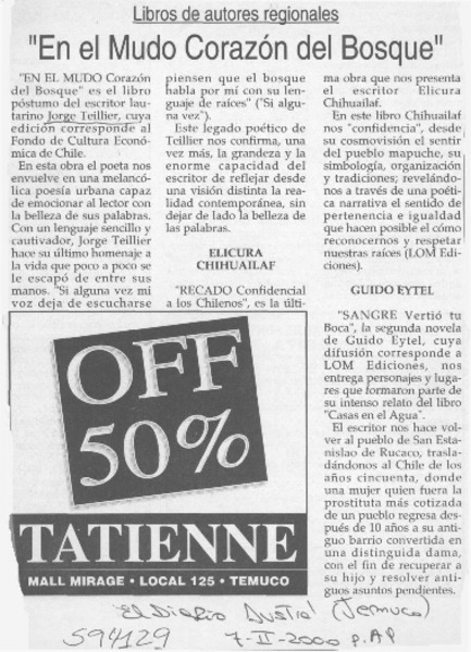 Autores chilenos - Teillier, Jorge - En el mudo corazón del bosque