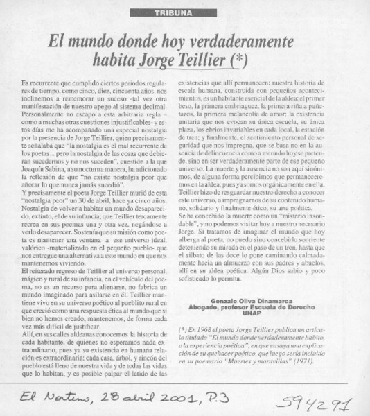 El mundo donde hoy verdaderamente habita Jorge Teillier [artículo] Gonzalo Oliva Dinamarca