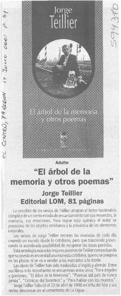 Del árbol de la memoria, un brote de Jorge Teillier [artículo] D. F. B. R.