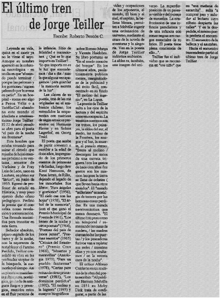 Se ha ido el poeta Teillier [artículo] Roberto Bescós C.