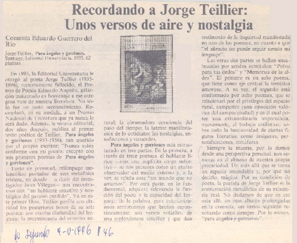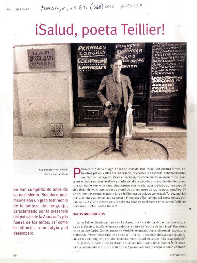 ¡Salud, poeta Teillier! [artículo] Eduardo Guerrero del Río.