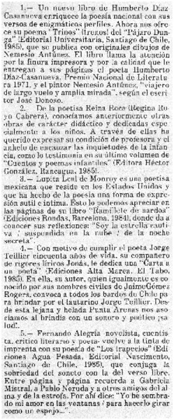 Autores chilenos - Martínez, Juan Luis - Rojas, Gonzalo - Parra, Nicanor - Hahn, Óscar - Teillier, Jorge - Díaz-Casanueva, Humberto - Uribe, Armando