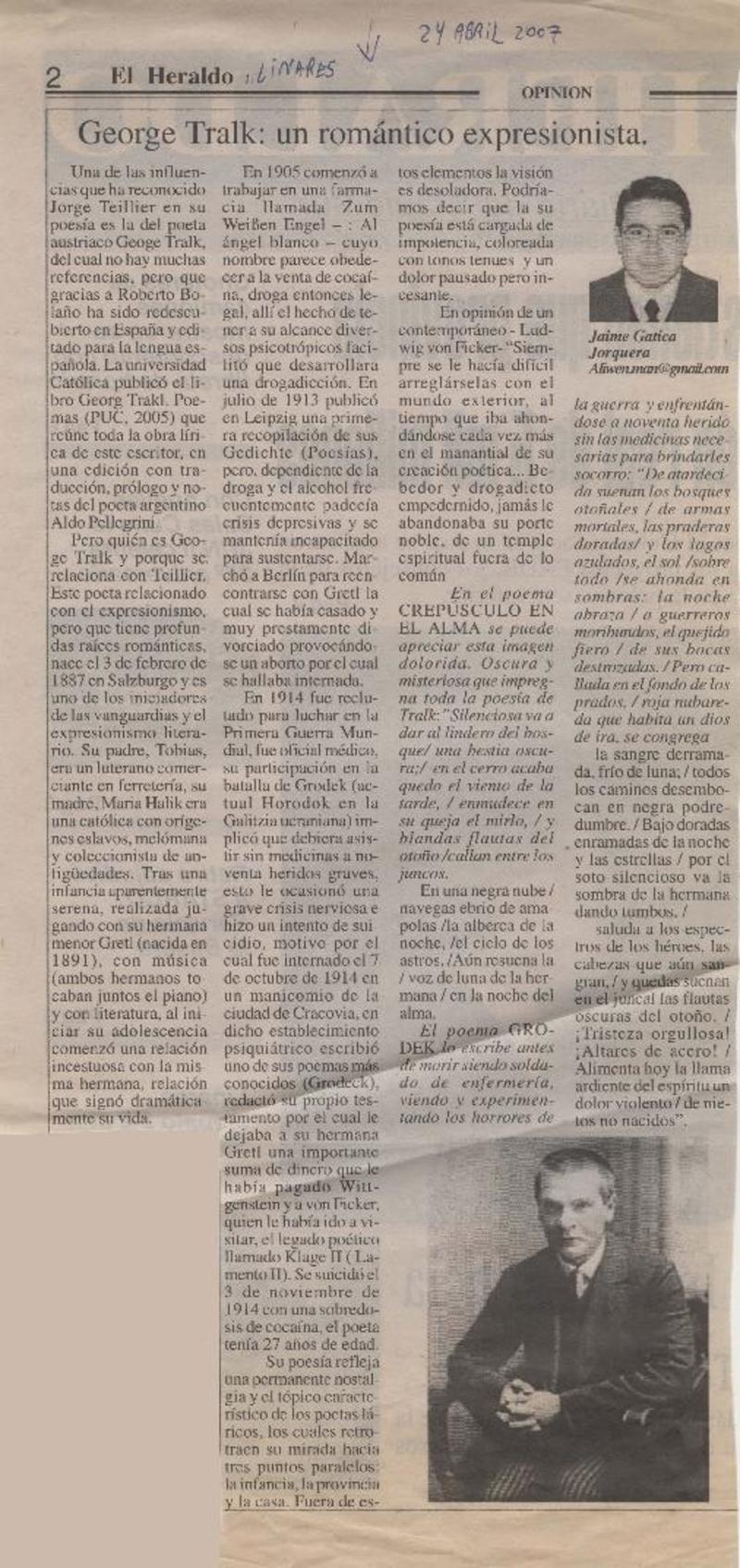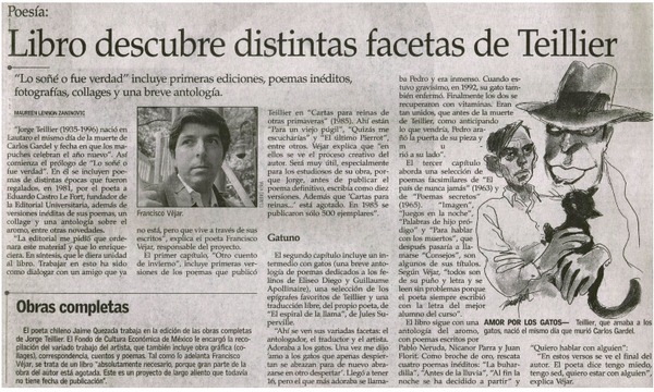 Con libros y homenajes resucitan a un poeta clave del siglo XX [artículo] Maureen Lennon Zaninovic.