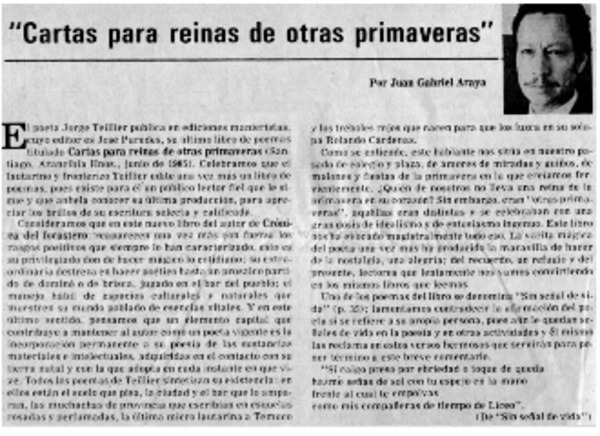 Cartas para reinas de otras primaveras [artículo] Juan Gabriel Araya G.