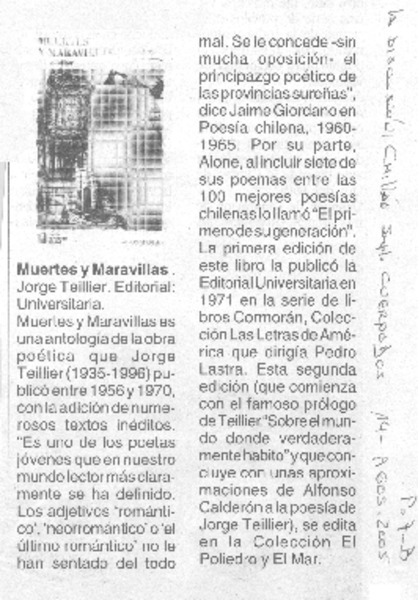 Autores chilenos - Teillier, Jorge - Muertes y maravillas