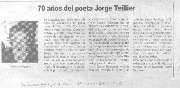 70 años del poeta Jorge Teillier [artículo] Ramón Riquelme.