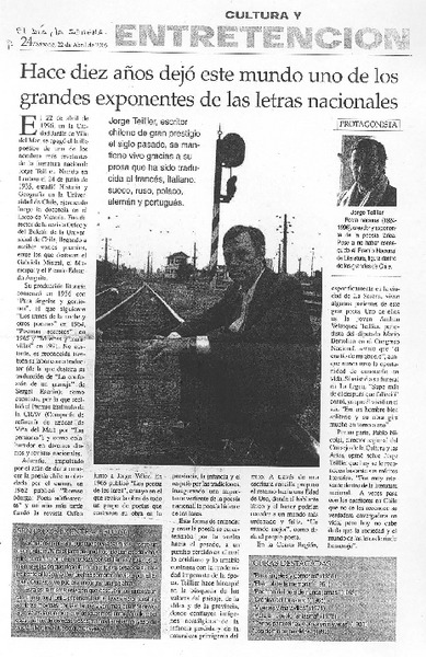Rescatan vida y obra de Teillier a 10 años de su muerte [artículo] Andrés Gómez Bravo.