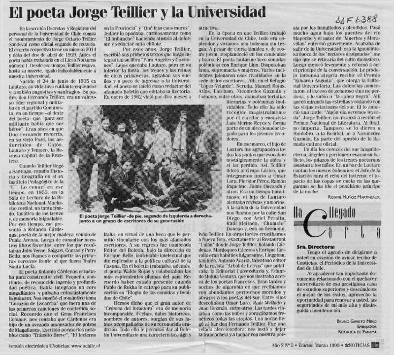 El poeta Jorge Teillier y la Universidad [artículo] Ronnie Muñoz Martineaux.