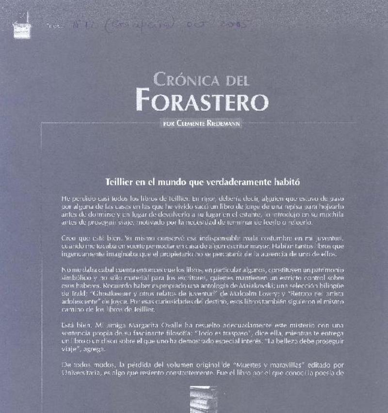 Autores chilenos - Teillier, Jorge - crónica del forastero