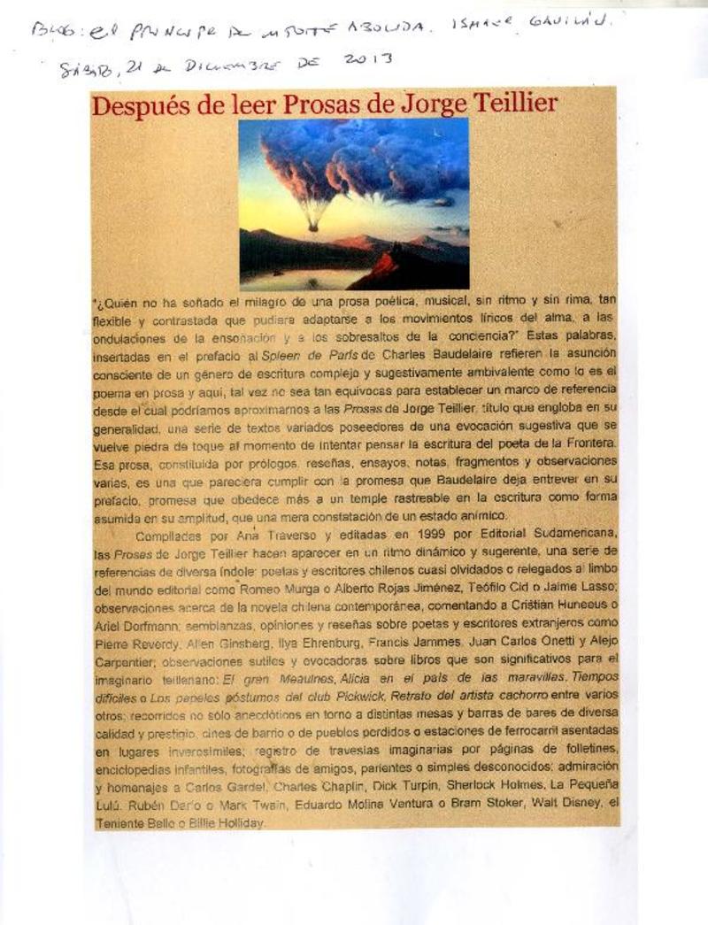 Después de leer prosas de Jorge Teillier [artículo] Ismael Gavilan