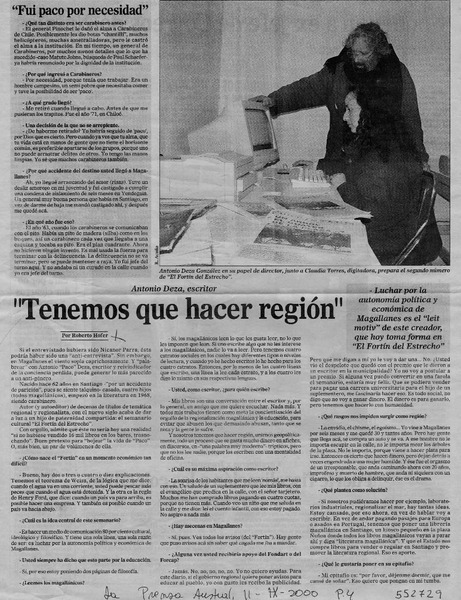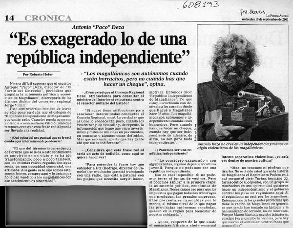 "Es exagerado lo de una república independiente" [artículo] Roberto Hofer