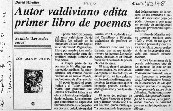 Autor valdiviano edita primer libro de poemas [artículo].