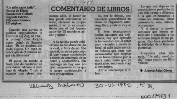 "Un niño nació judío" [artículo] Antonio Rojas Gómez.