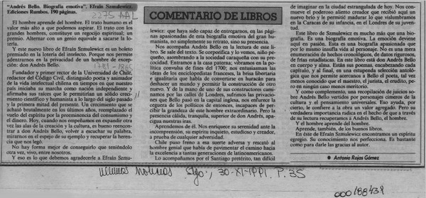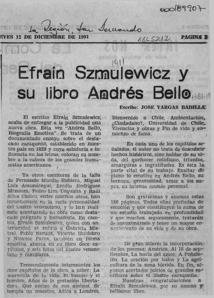 Efraín Szmulewicz y su libro Andrés Bello [artículo] José Vargas Badilla.