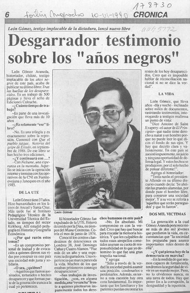 Desgarrador testimonio sobre los "años negros" [artículo].