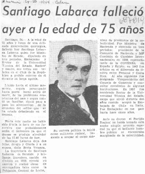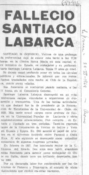 Santiago Labarca falleció ayer a la edad de 75 años. [artículo]