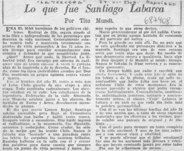 Lo que fue Santiago Labarca [artículo] Tito Mundt.