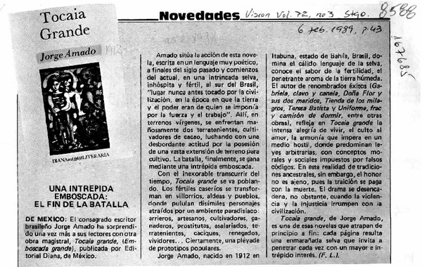 Una Accidentada historia tiene la más reciente obra de Jorge Amado [artículo].