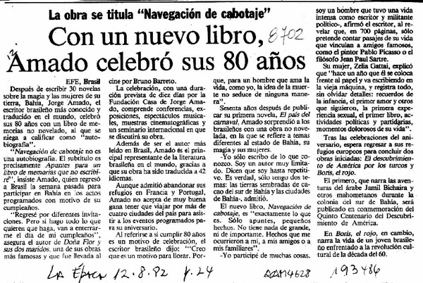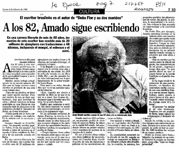 A los 82, Amado sigue escribiendo [artículo] Ian Simpson.