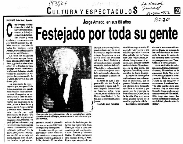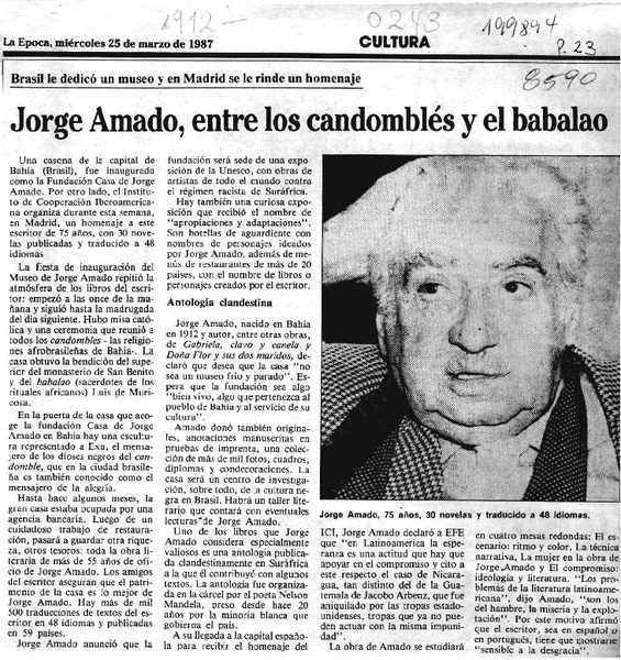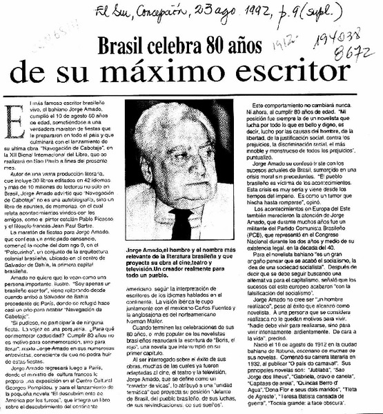Jorge Amado, escritor brasileño, un mozo de 80 años [artículo] Juan Cruz.