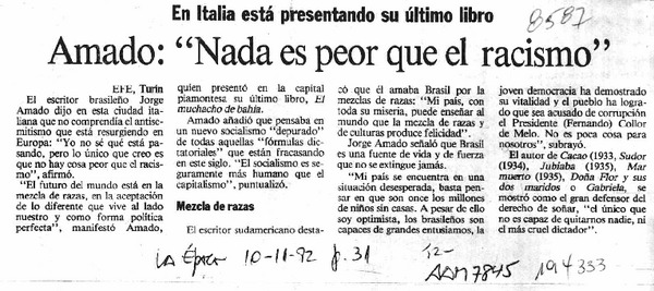 Jorge Amado, de Bahía [artículo] Luis Pancorbo.