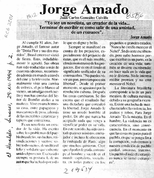 Jorge Amado [artículo] Juan Carlos González Colville.
