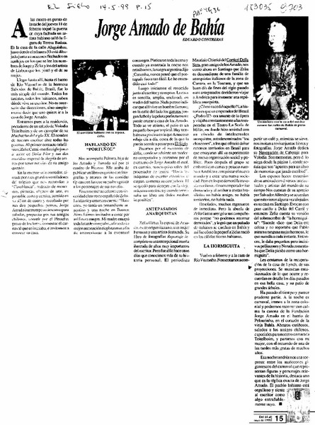 Jorge Amado de Bahía [artículo] Eduardo Contreras.