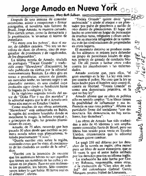 Jorge Amado en Nueva York [artículo] Mary Beth Sullivan.
