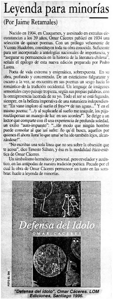 Autores chilenos - Cáceres, Omar - Defensa del ídolo