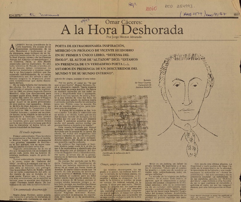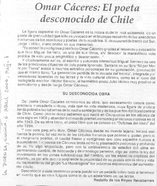 Omar Cáceres: El poeta desconocido de Chile [artículo]