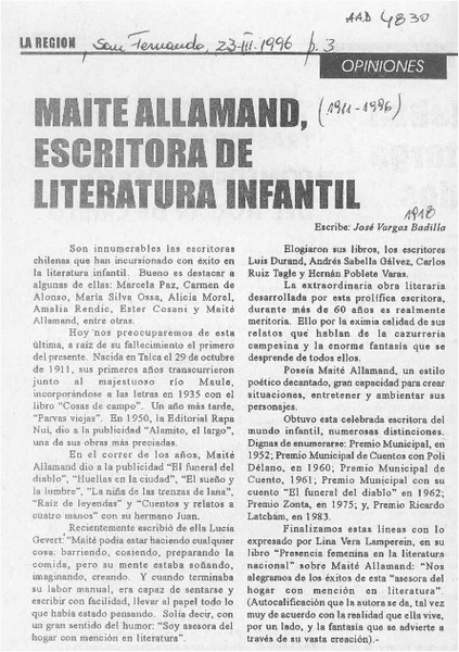 Maité Allamand, escritora de literatura infantil [artículo] José Vargas Badilla.