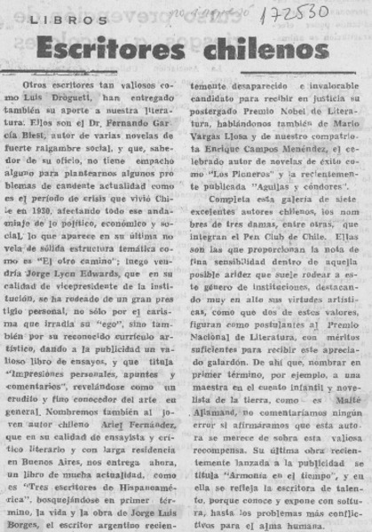 Autores chilenos - Lafourcade, Enrique - Arteche, Miguel - Ruiz-Tagle, Carlos - Barrenechea, Julio - Allamand, Maité - Sarah, Roberto