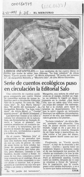 Serie de cuentos ecológicos puso en circulación la Editorial Salo [artículo] E.R.M.