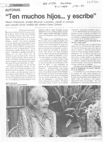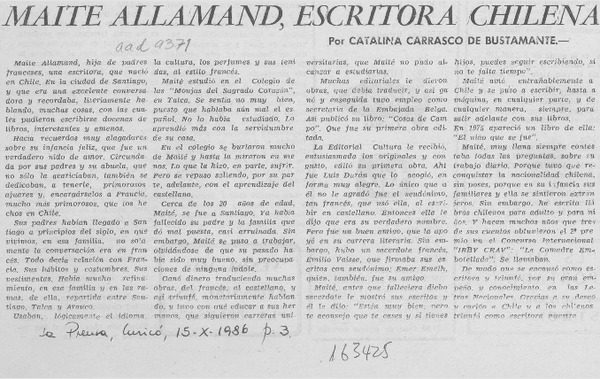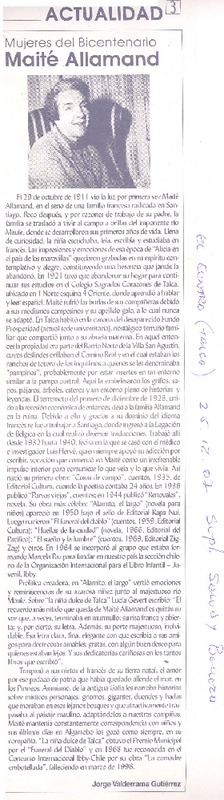 Maité Allamand, escritora chilena [artículo] Catalina Carrasco de Bustamante.