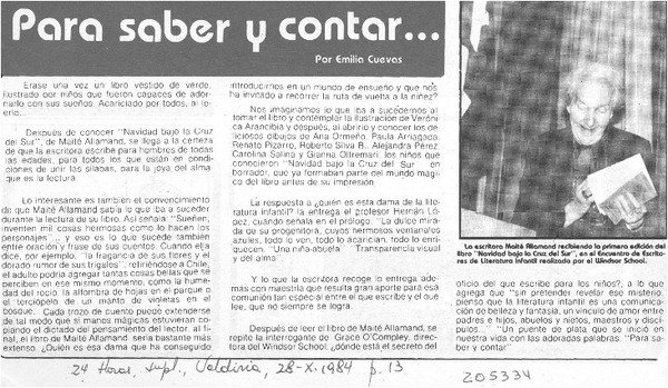 Para saber y contar -- [artículo] Emilia Cuevas.