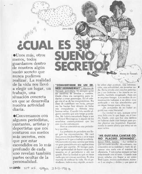¿Cuál es su sueño secreto? [artículo] Carmen Luz Abalo.