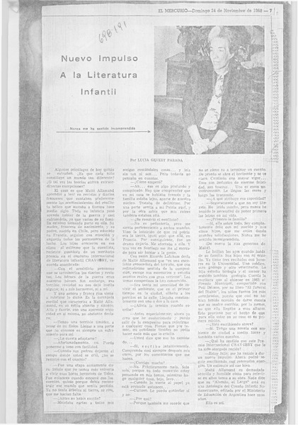 Nuevo impulso a la literatura infantil [artículo] Lucía Gevert Parada.